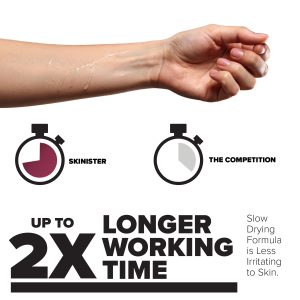 Skinister Medical Adhesive Remover is formulated to aid in the removal of ostomy bags, tapes, and medical appliances from the skin. It gently dissolves adhesives and barriers, including our own Skinister Medical Adhesive, ensuring a clean removal process for both skin and devices. Formulated with 100% silicone fluid, this remover is odor-free, sting-free, and hypoallergenic, making it suitable for sensitive skin types. Its unique aerosol-free formula evaporates slowly, providing a gentle experience without the rush. After use, it evaporates completely, leaving the skin clean, dry, and prepared for subsequent applications.
